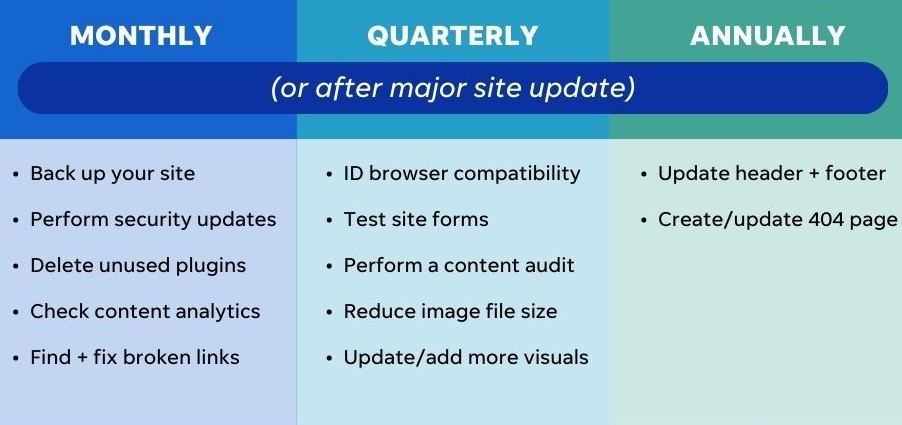 The above is an example of what my website maintenance covers. Shoot me an email or give me a call if you may be needing any of the above services covered, monthly, quarterly or annually.